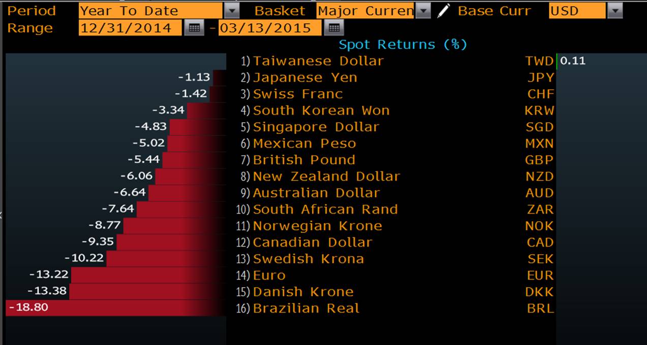 Concern that Rousseff is struggling to reduce deficits threatening the nation’s investment-grade credit rating pushed the real down 6.5 percent since March 6 in its second straight weekly slide. Unions began protests over pensions Friday, and more than a quarter of a million people have signed up on social media to participate in demonstrations Sunday.