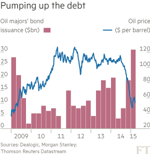 The majors have made up a much larger share of overall oil and gas debt issuance, accounting for 48 per cent of such fundraising this year, up from 30 per cent in the last three months of 2014. By contrast, the share of state-owned oil companies has fallen to just 22 per cent from 35 per cent in the first quarter of last year.
