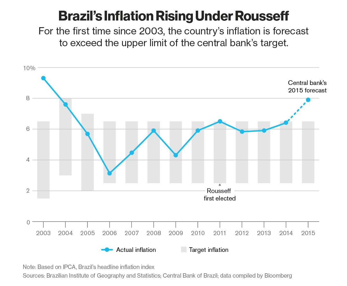 In an about-face from her first mandate, Rousseff has cut loan subsidies, increased taxes, and allowed price increases on items such as fuel and transportation in order to avoid a credit rating downgrade and shrink a budget deficit that more than doubled last year.