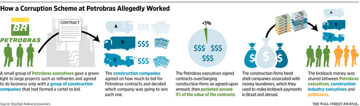 Prosecutors say bribery appears to have begun as early as 1997. Construction firms wanting to do business with Petrobras agreed to pay bribes to Petrobras executives, who would inflate the cost of the contracts. The bribes were around 3% of the inflated contracts, according to testimony to Congress by Mr. Costa and another former manager who has struck a plea deal, Pedro Barusco. The two said Petrobras officials brokering the action took a cut of the cash from the inflated contracts, funneling the rest to a slush fund for lawmakers and political parties.