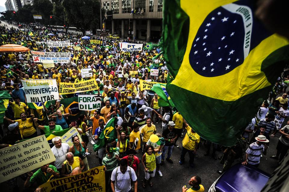 Thousands took to the streets in Rio de Janeiro in March to protest alleged corruption involving executives of state-controlled oil company Petrobras and politicians. PHOTO: FABIO TEIXEIRA/ZUMA PRESS