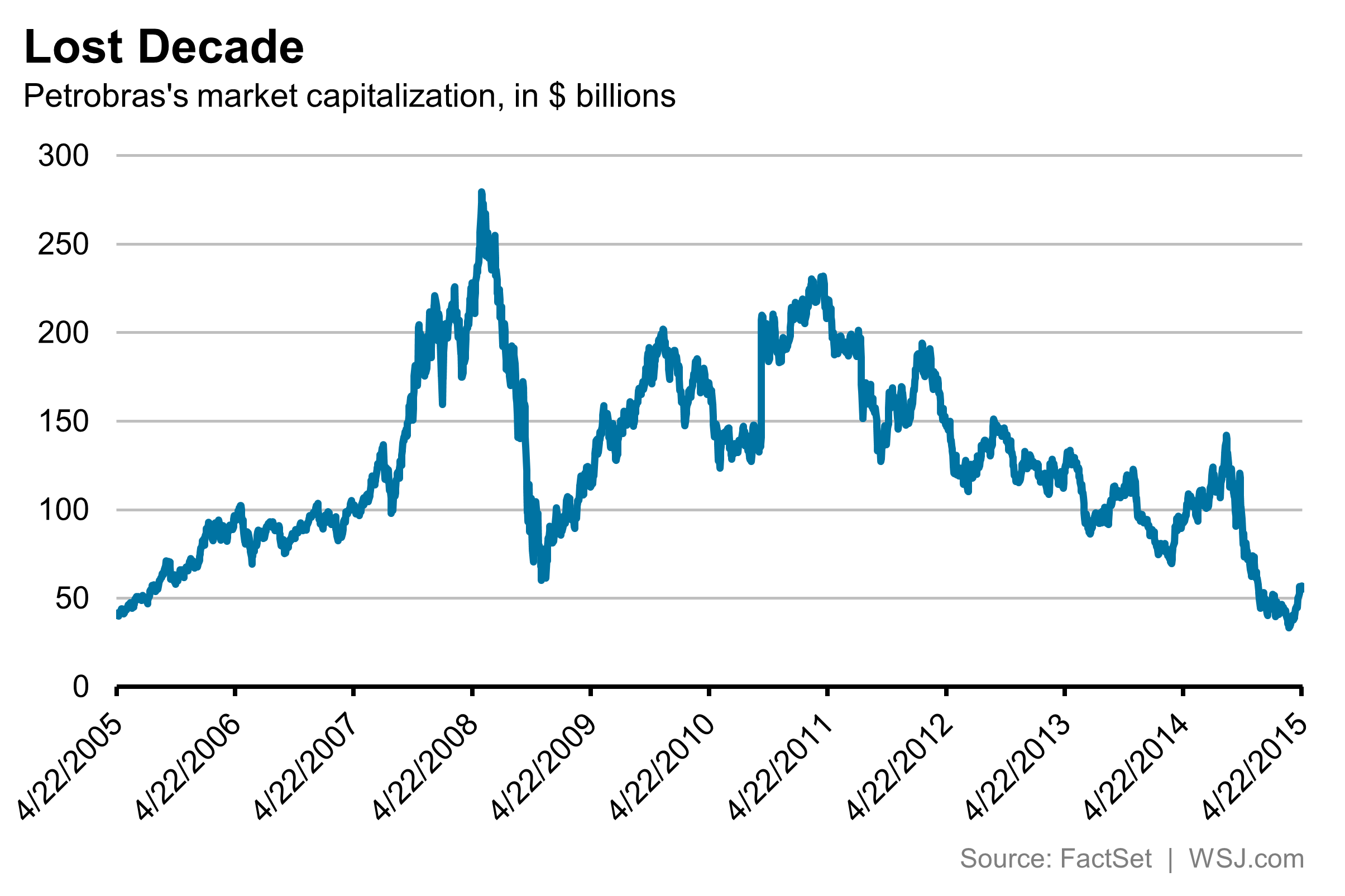It is tempting to think a company whose market value has dropped by about 75% in the past four years can’t go any lower. But, with a nod to Petrobras’s legal woes, investors should recall the opening line of disco classic “Car Wash”: “You might not ever get rich.”