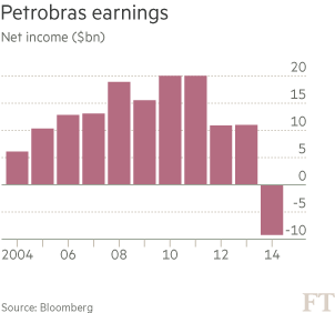The 2014 results — R$6.2bn in losses directly related to corruption investigations and an impairment charge of R$44.6bn because of delayed refinery projects and the global oil price fall — staggered Brazilians.