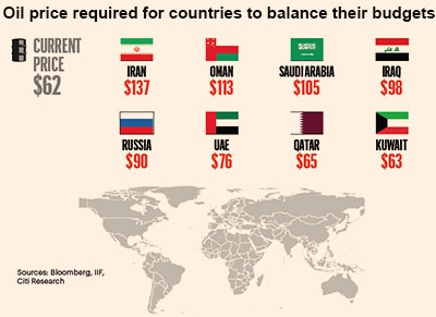 If the international oil price does hit a new ceiling at about $80 per barrel, the countries that need a higher price to balance their budgets will come under growing financial strain.