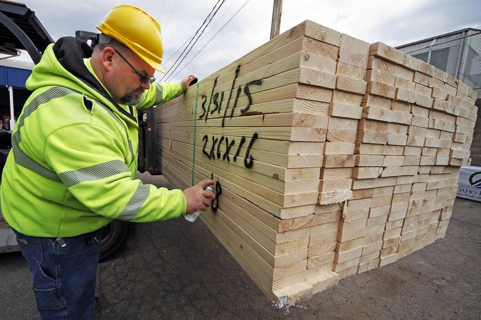 The U.S. economy slowed sharply at the start of the year as businesses slashed investment, exports tumbled and consumers showed signs of caution., Here, a pallet of lumber gets marked at the Allegheny Millwork and Lumberyard in Pittsburgh. PHOTO: GENE J. PUSKAR/ASSOCIATED PRESS