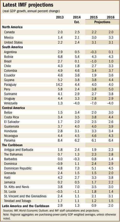The IMF’s Regional Economic Outlook for the Western Hemisphere, released April 29 in Santiago, Chile, projects growth in Latin America and the Caribbean at 0.9 percent in 2015, down from 1.3 percent in 2014.