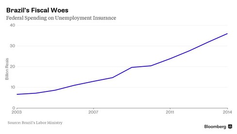 Government spending on unemployment insurance in Brazil has more than tripled since 2003, contributing to widening public debt.