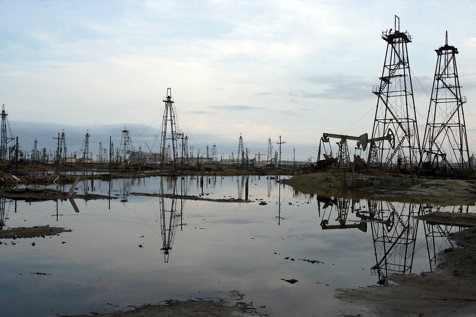 Towers dot the skyline at an old oil field near Baku, Azerbaijan. OPEC sparked a struggle for market share after it decided not to cut production in November. PHOTO: BLOOMBERG NEWS