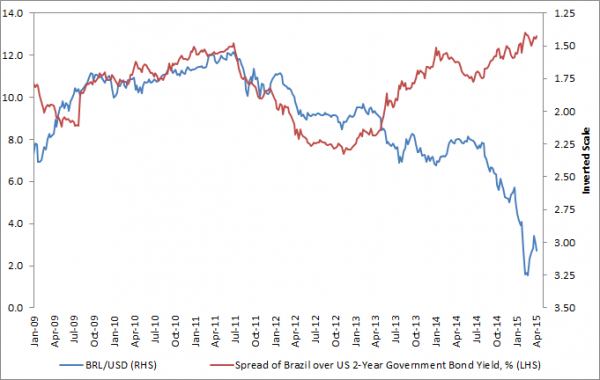 Brazil’s economy – as beyondbrics readers know – is in serious trouble, and the unorthodox policies of the country’s embattled president, Dilma Rousseff, have been major contributors to the Brazilian real’s sharp depreciation. But as an analyst who has a long-held negative view on the Brazilian real, it is interesting to ask – at this moment – whether we might be missing something now that investor sentiment has caught up with our bearish stance on the currency.