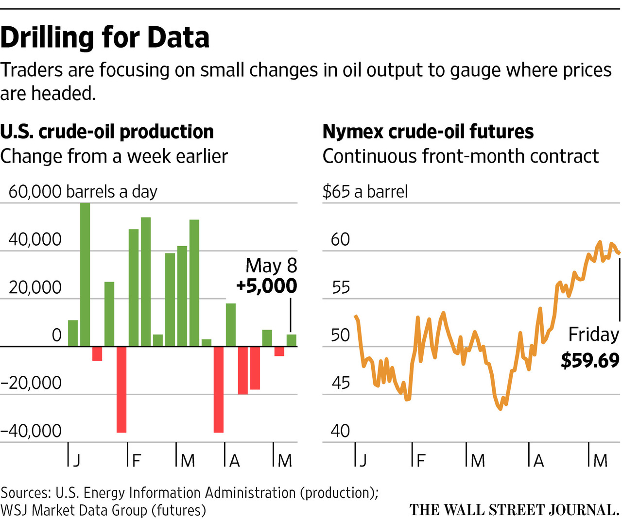 More often, investors are looking to weekly U.S. oil-production data from the U.S. Energy Information Administration for signs the global glut of crude that sunk prices last year is starting to shrink.