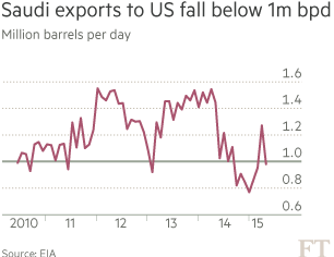 The last time that Saudi crude exports to the US averaged less than 1m b/d for a significant period was 2009, when the financial crisis had slashed demand for crude. There have been individual months when imports have fallen below that milestone level, but not for a prolonged period.