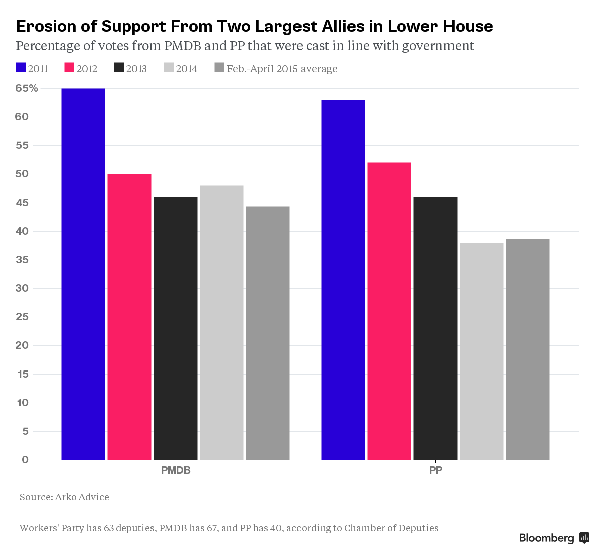 “The government, clearly, at the start of this legislature, lost its base,” Eduardo Cunha, president of the lower house and a member of the PMDB party, told reporters on May 14. “It is trying to rebuild it.”