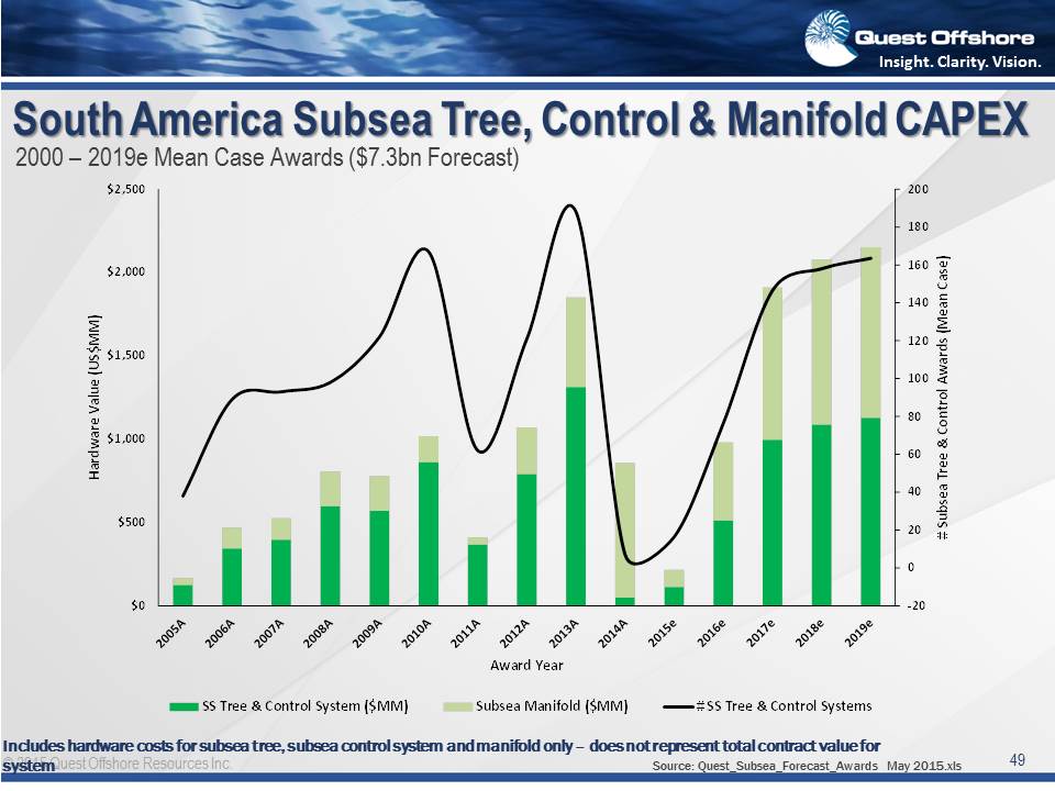 Due to the conditions in Brazil, Petrobras’ subsea spend can be seen to have fallen as much as 80% since its peak in 2013