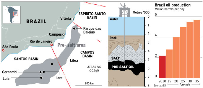 Brazil’s Subsalt Polygon, an offshore area that has already yielded some of the world’s largest recent oil finds, may hold enough undiscovered petroleum and gas to supply the world’s current oil needs for more than five years, researchers said.