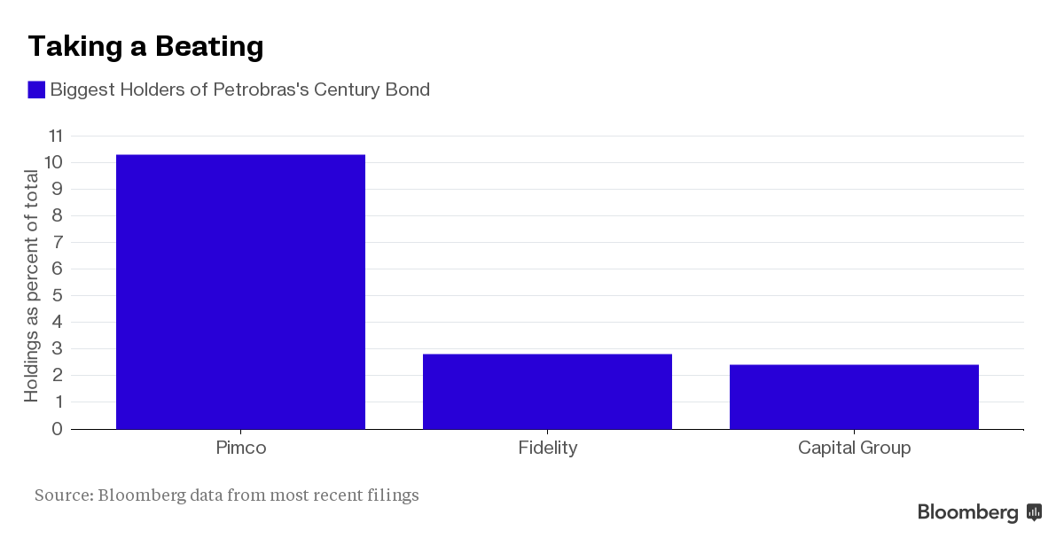 For investors like Pacific Investment Management Co., Fidelity Management & Research Co. and Capital Group Inc. — the threebiggest holders of the securities — that turned out to be a costly miscalculation. Since the $2.5 billion offering, the bonds have tumbled 15 percent. That’s four times the average loss for emerging-market company debt.