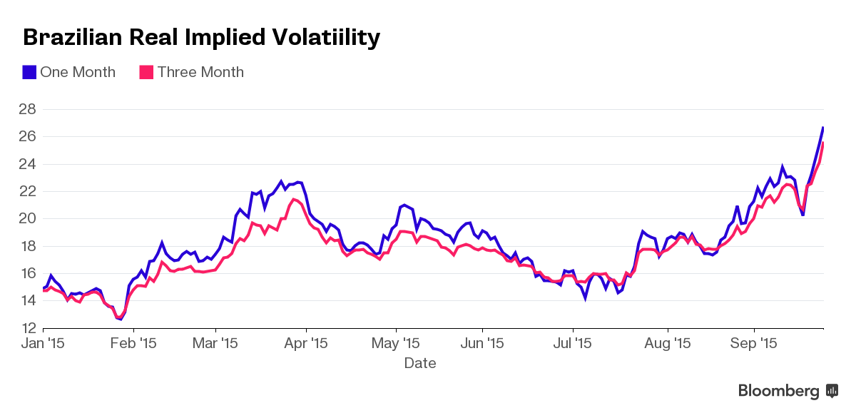 The central bank president’s comments helped send the real from a record low to its biggest gain in seven years Thursday as it surged 5.8 percent. It extended gains on Friday, rising 0.5 percent to 3.9331 per dollar as of 8:40 a.m. in New York. Still, the currency’s down 8.1 percent in the past month, more than any other emerging-market currency. And investors are bracing for more pain amid doubts the government will be able to shore up its budget and lead Brazil out of what’s forecast to be its worst recession since the 1930s.