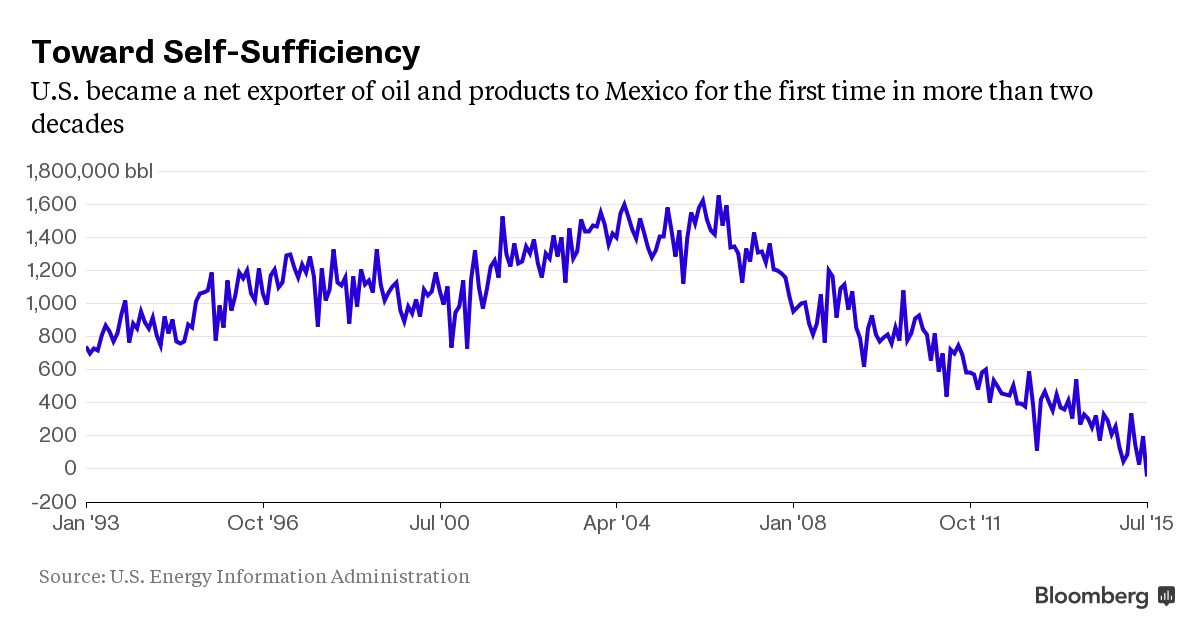 The emergence of the U.S. as a net supplier to Mexico underscores how the growth of the shale industry is redrawing the global energy map. Output from shale rocks pushed U.S. oil production to a three-decade high earlier this year, driving down prices, boosting margins for refiners and fueling a debate over whether the country should lift restrictions on exports of crude.