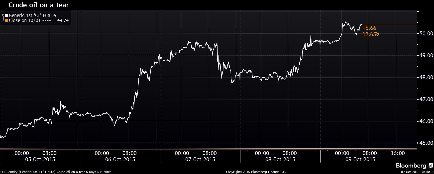 The front-month West Texas Intermediate futures contract enjoyed a double-digit advance in recent days, breaking above $50 per barrel on Thursday for the first time since July: