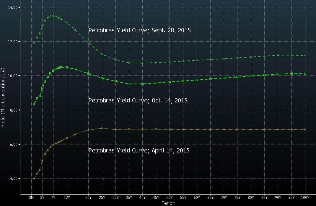 But beyond that, yields still aren’t high enough to compensate for the risks tied to refinancing, the slump in oil and a weaker Brazilian currency, Deutsche Bank’s Eduardo Vieira wrote in a report dated Oct. 7. It’s the first time Vieira has recommended buying bonds issued by Petrobras since a bribery investigation involving company executives began in November 2014.