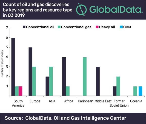 GlobalData revealed that a total of 38 oil and gas discoveries were made globally in Q3 2019.