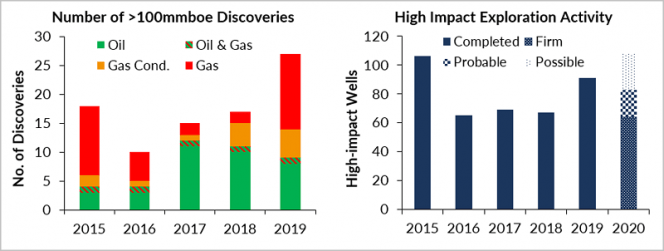 Westwood is suggesting keeping an eye on Brazil in 2020 with one high impact well currently drilling and seven wells planned in recently awarded licenses testing 6 billion barrels of unrisked volume in pre-salt plays in the Santos and Campos basins, and the Ceara Basin.