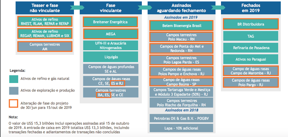 In October, it completed the sale of 100% of the Pargo, Carapeba and Vermelho fields, located in shallow waters of the Campos Basin, to Perenco. The payment of approximately US $ 324 million to Petrobras was completed, in addition to the US $ 74 million paid on signing the contracts.
