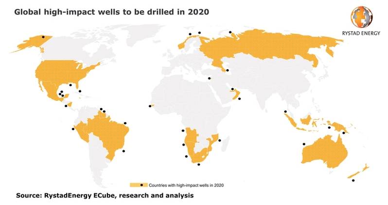 The majority of high impact offshore exploration wells in 2020 will be drilled in Africa and the Americas, Rystad Energy, an energy research group based in Norway has said.