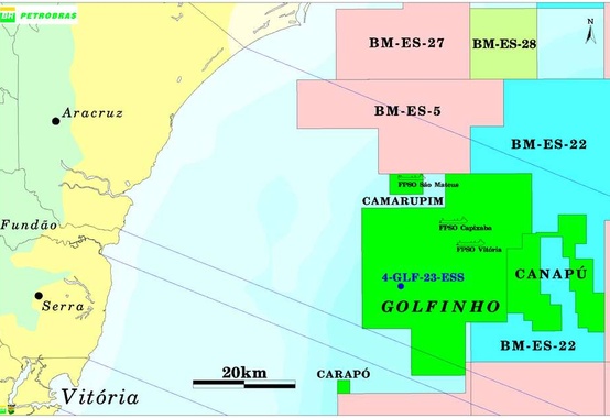 Petrobras has 100% stake in the Golfinho and Camarupim Clusters(*) concessions, with the exception of the BM-ES-23 exploratory block, in which it holds a 65% majority stake, in partnership with PTTEP (20%) and Inpex (15%). Petrobras is the operator in all concessions.
