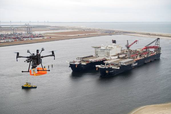 Allseas’ giant Pioneering Spirit offshore construction and decommissioning vessel last week provided a stage for what is believed to be the Netherlands’ first drone to vessel delivery.