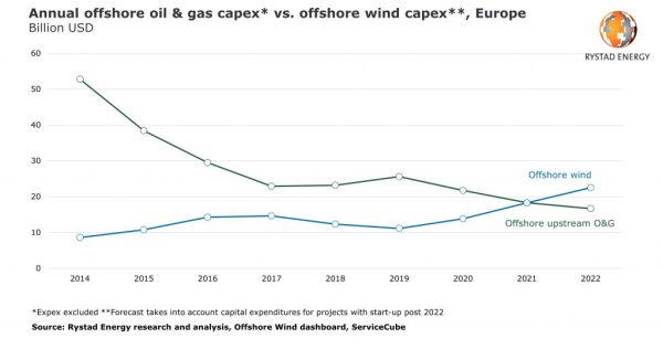 European offshore wind CAPEX to top upstream oil & gas in 2022 – Rystad Energy