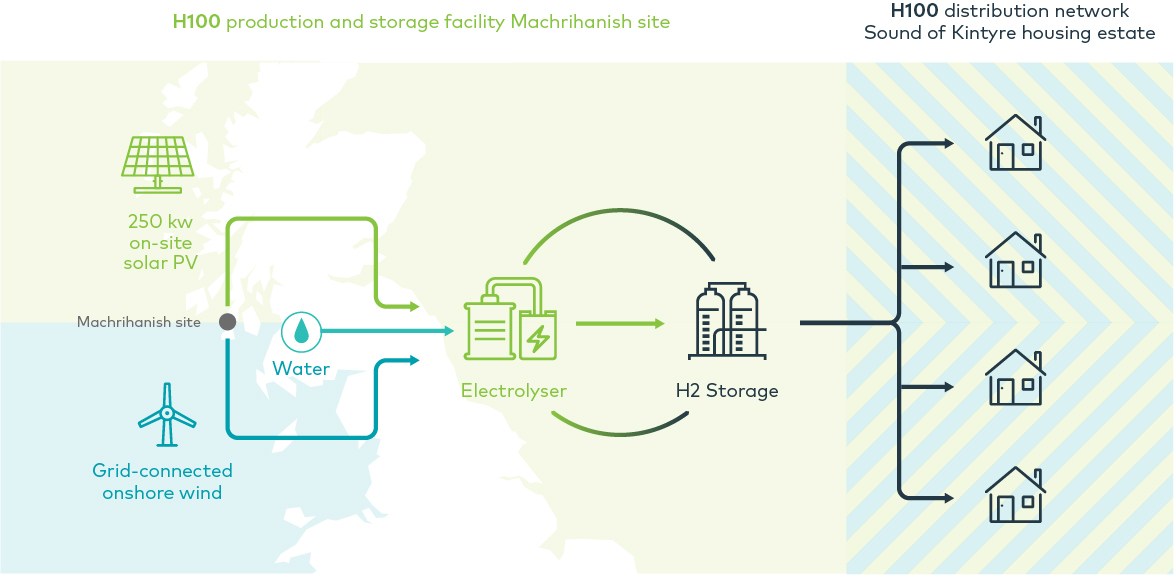 The H100 demonstration project will initially aim to supply energy to homes in Fife, Scotland. When powered by renewable energy, the generation and burning of hydrogen produces no carbon, making it one of the most effective, scalable ways of providing heating while tackling climate change. On completion, this project will be the first of its kind to employ a direct supply of offshore wind renewable power to produce green hydrogen energy, heating up to 300 homes in the first instance.