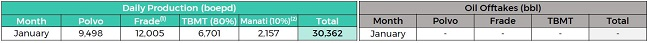 – Petro Rio S.A. (“Company” or “PetroRio”) (B3: PRIO3), following best practices in corporate governance and transparency, informs its preliminary and non-audited Operational Data for the month of January. Obs.: (1) Frade figures account for a 70% interest in the Frade Field. On February 5, 2021, the Company announced the closing of the acquisition of the remaining 30% stake, and the corresponding volume will be incorporated into the monthly report as of the mentioned date. (2) On November 5, 2020 the sale of the 10% interest in the Manati Field held by PetroRio was announced, which awaits precedent conditions for the transaction’s closing. |