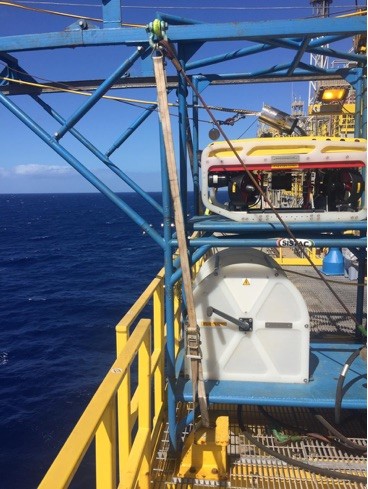 The vehicle’s first task is on-line fibre optic video surveillance of the pull in – pull out pipeline connection process by the Falcon’s HD camera.