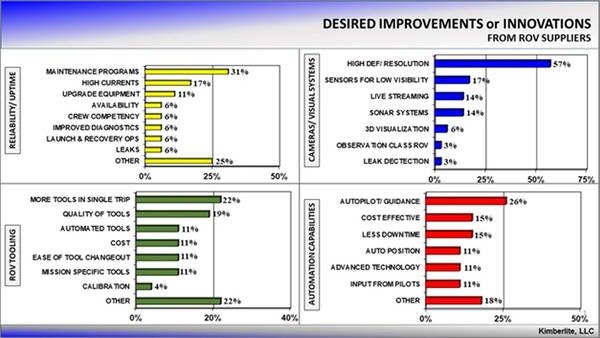 Looking specifically at ROV services, a recent industry survey conducted by Kimberlite International Oilfield Research found that subsea operators are looking for improved ROV reliability/uptime and visualization systems and for further improvements to ROV tooling and automation capabilities.
