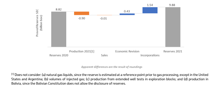 Petróleo Brasileiro S.A. – Petrobras discloses its proved reserves of oil, condensate and natural gas, according to SEC (US Securities and Exchange Commission) regulation, estimated at 9.88 billion barrels of oil equivalent (boe), as of December 31, 2021. Oil and condensate, and natural gas correspond to 85% and 15% of this total, respectively.