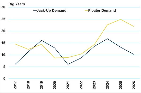 Upcoming development drilling combined with some exploration work will generate an increasing level of offshore rig demand going forward. MSI also expects an increase in well intervention work for existing platforms in the region, as many of them are getting older and require more maintenance.