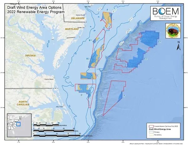 The U.S. Bureau of Ocean Energy Management (BOEM) on Wednesday announced eight draft Wind Energy Areas (WEAs) offshore the U.S. central Atlantic coast for public review and comment.
