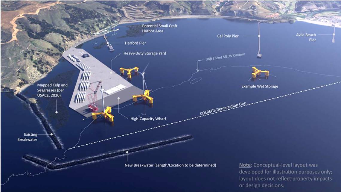 A new study shows the massive port infrastructure that could come to the Central Coast to support proposed floating offshore wind energy developments.