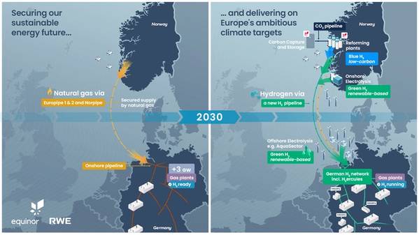 In anticipation of this infrastructure, Equinor and RWE have proposed “a series of investments that would be major building blocks for European hydrogen supply and its utilization in the power sector from 2030 onwards.”