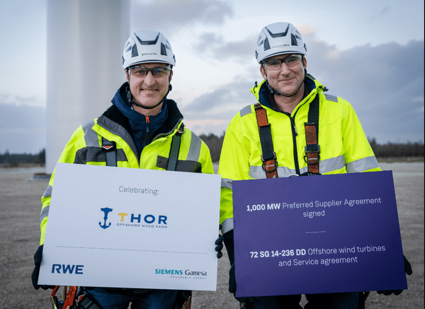 Under the Preferred Supplier Agreement signed with RWE Siemens Gamesa will deliver 72 units of Siemens Gamesa’s flagship SG 14-236 DD offshore wind turbines for the Thor project. In addition, a service contract for the wind turbines is included.
