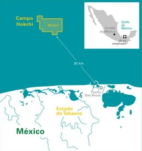 The Hokchi field is located in the southeastern province Oil Basins, in the territorial waters of the continental shelf of the Gulf of Mexico, to a distance from the coast of approximately 20 kilometers.