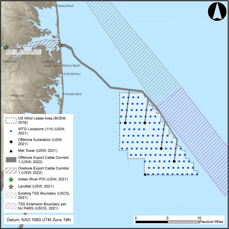 The US Bureau of Ocean Energy Management (BOEM) initiated the federal permitting process for the projects at US Wind’s offshore wind lease area last year.