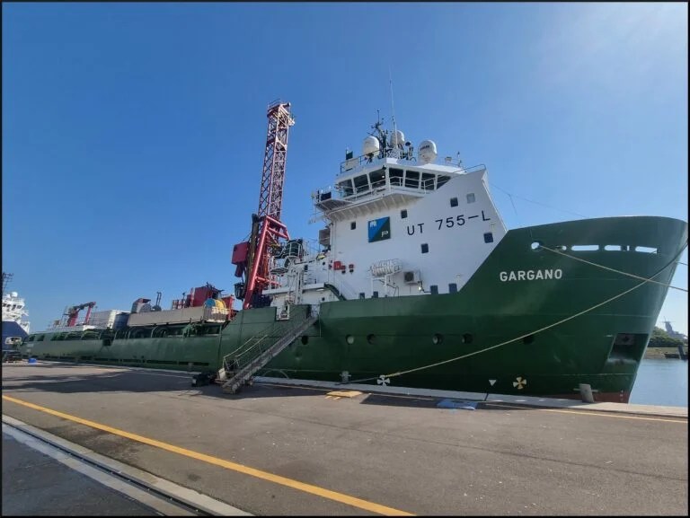 After an evaluation of environmental impacts, Fugro mobilised its Gargano vessel on Wednesday, 12 April, equipped with drilling, sampling, and cone penetration testing equipment.