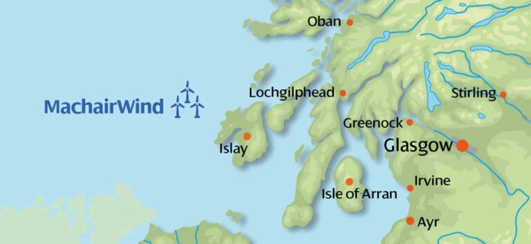 The 2 GW MachairWind, whose wind turbines will be installed on fixed-bottom foundations, is planned to be built off the coast of Islay.