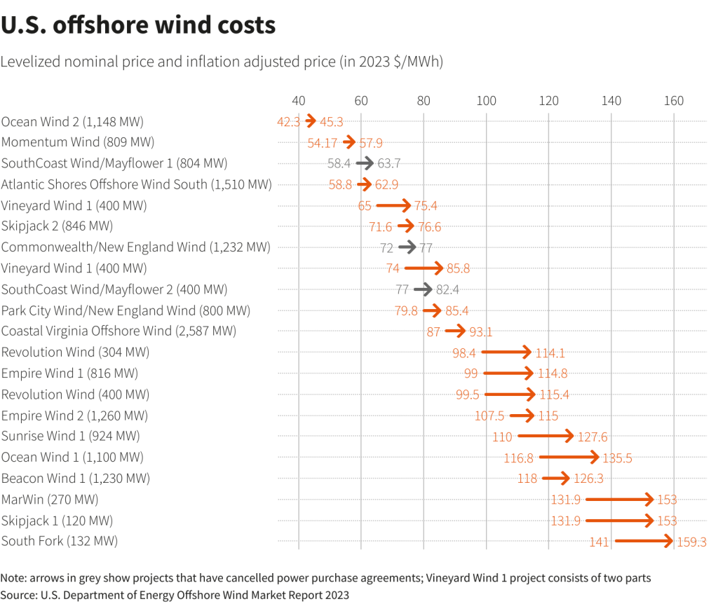 Two projects owned by Norway’s Equinor and British oil major BP south of Long Island are also seeking to renegotiate the previously agreed strike price to adjust it for inflation and other cost increases.