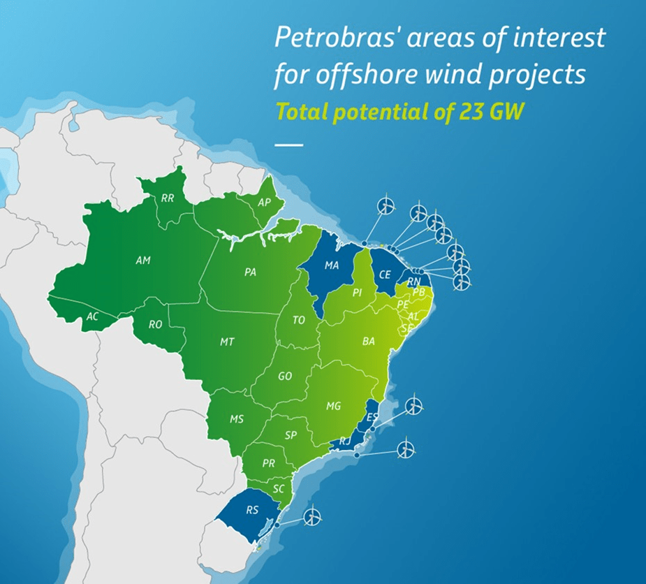 Petróleo Brasileiro S.A. – Petrobras informs that it has submitted a request with Ibama to start the environmental licensing process for ten areas in the Brazilian sea intended for the development of offshore wind energy projects. Of this total, seven areas are in the Northeast (three in Rio Grande do Norte, three in Ceará and one in Maranhão); two in the Southeast (one in Rio de Janeiro and one in Espírito Santo) and one in the South of the country (in Rio Grande do Sul). Together, these areas, which will be evaluated, have the potential to develop offshore wind projects with a capacity of up to 23 GW. With this, Petrobras becomes the company with the greatest potential for offshore wind power generation in Brazil in terms of capacity registered with Ibama.