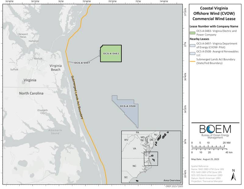 (OE) The U.S. Bureau of Ocean Energy Management (BOEM) said Monday it had completed its environmental review of the proposed 3GW Coastal Virginia Offshore Wind (CVOW) commercial project, which BOEM estimates could power about 1 million households, if approved.