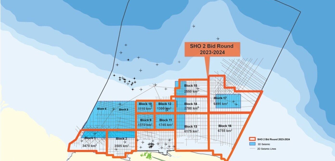 Eleven blocks were put on auction. Staatsolie’s Hydrocarbon Institute (SHI) said the blocks, situated between the onshore-producing oilfields and the deepwater discoveries, fall within water depths up to 150 meters. SHI said recent mapping on these blocks has identified over 98 leads and prospects which have been interpreted from existing 2D and newly acquired multiclient 3D seismic data. Collectively, SHI noted that these leads and prospects host a significant volume of oil with an aggregate mean unrisked STOIIP (stock tank oil initially in place) amounting to an “impressive 91 billion barrels.” STOIIP refers to an estimate of how much oil in a reservoir is economically recoverable.
