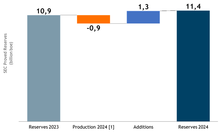The evolution of proved reserves is shown in the graph below.