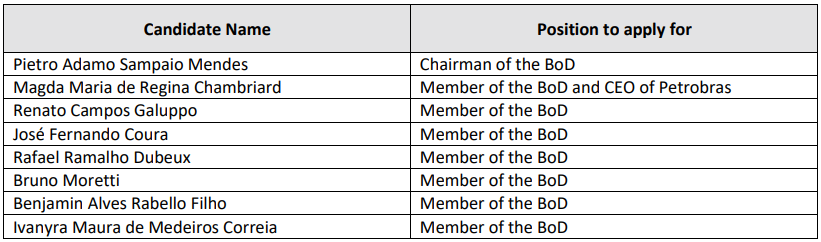 In accordance with Petrobras’ internal governance procedures and its Policy on the Appointment of Members of Senior Management, these appointments will be subject to an analysis of the legal, management and integrity requirements and the subsequent opinion of the Eligibility Committee and the Board of Directors, pursuant to article 21, paragraph 4, of Decree 8,945/2016, as amended by Decree 11,048/2022.